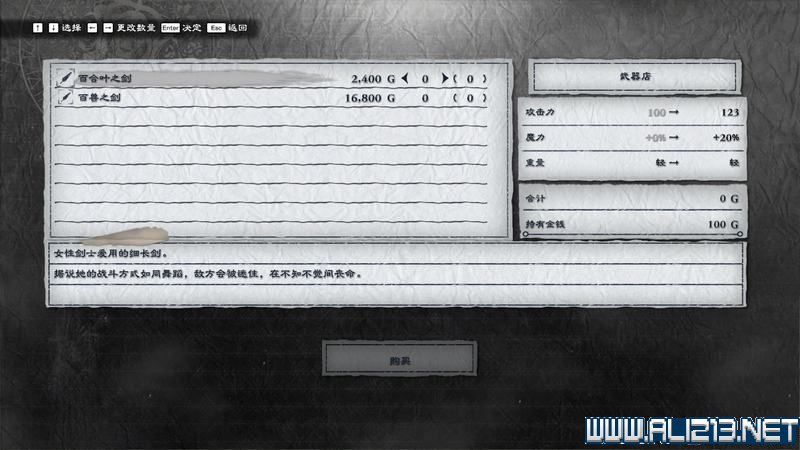 存钱够了也可以购买百合叶之剑,初期也算强力。
