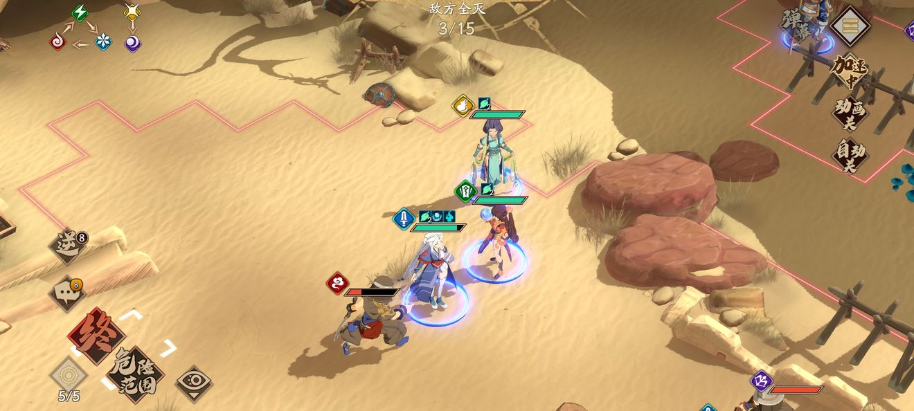 中间3人站位只有冰璃一个人进攻击范围反击火系御风。等璇玑和冰璃站好位置,封妈可以给一个被打回血。
