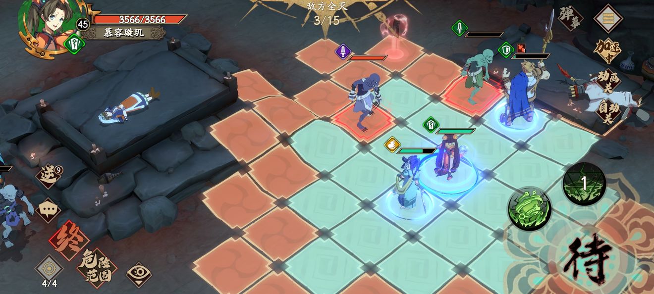 夏侯点死雷系,封妈再动(一定要在火系小怪攻击范围内)。走进雷系怪攻击范围,点死暗系