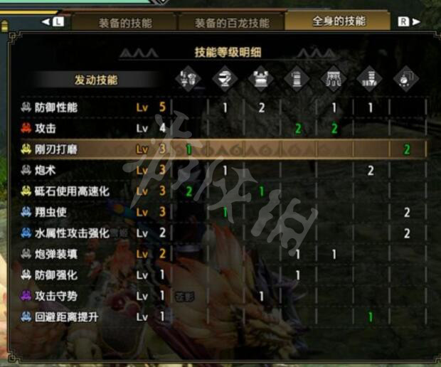 这两个技能主要用于提升全弹发射的伤害,一发全弹下去将近300伤害。此外炮术3对龙击炮和龙杭炮也有加成。