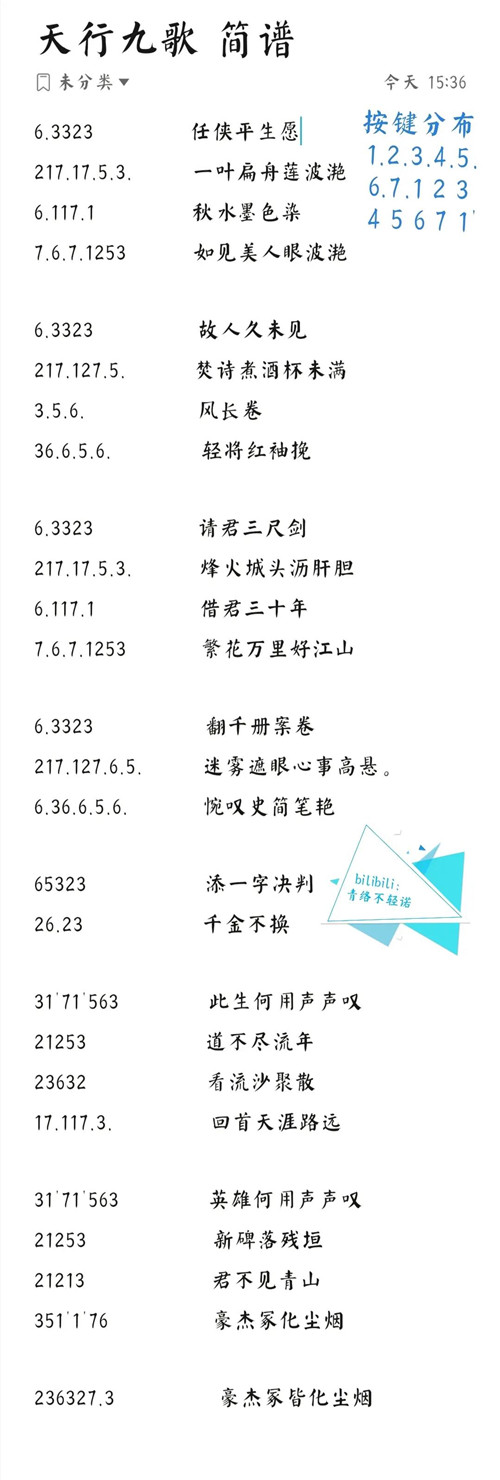 光遇天行九歌乐谱及演奏教程分享