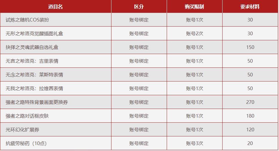 * 在匹配模式获得50次胜利后会得到试炼光环作为记念奖励(每个角色只能获得1次,每个职业动作不同)