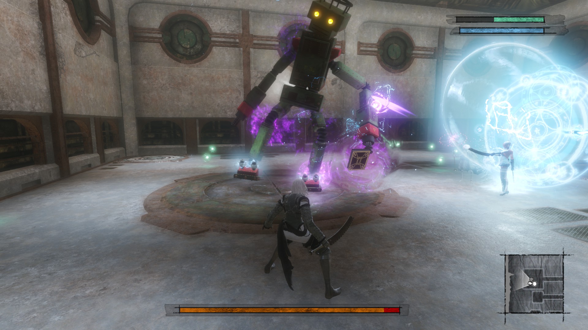 当你得到记忆合金时,继续前进并前往南边的下一个房间,在那里有2个机器人生产小机器人,杀了他们,看看有没有合金,如果没有,就死。重复直到刷完为止。
