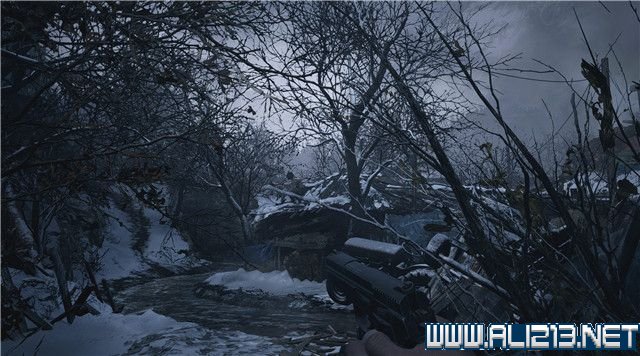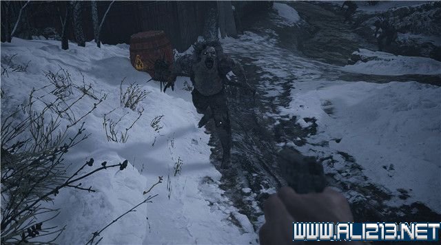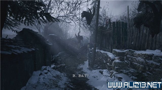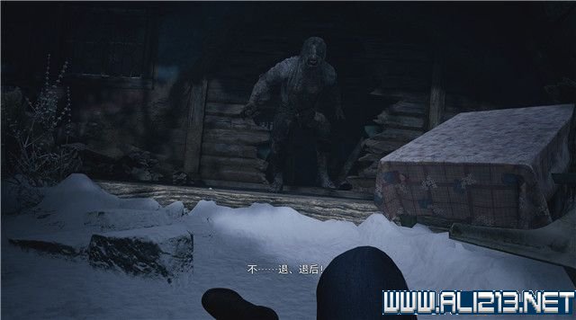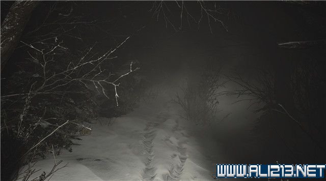 沿着雪地的道路往前走,你会在路途中听到各种恐怖的声音,似乎有东西跟着你。