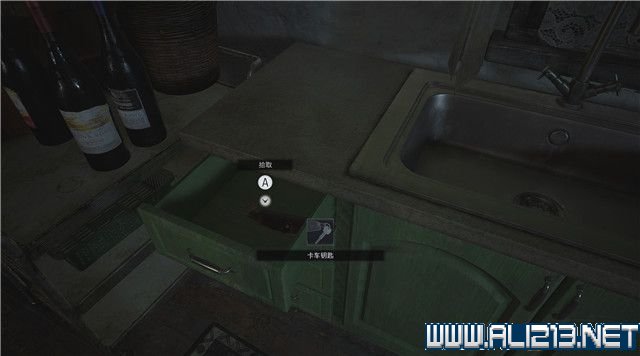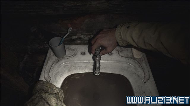 调查整座房屋,实际上这里没有任何补给品,找到位于厨房的洗漱台,尝试使用水龙头,升级剧情。