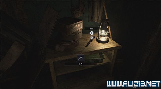 进入房间后,你将在一个桌子上找到小刀,获得小刀后,你实际上已经有了第一把武器,你可以用它打开附近的木箱,获得补给品。
