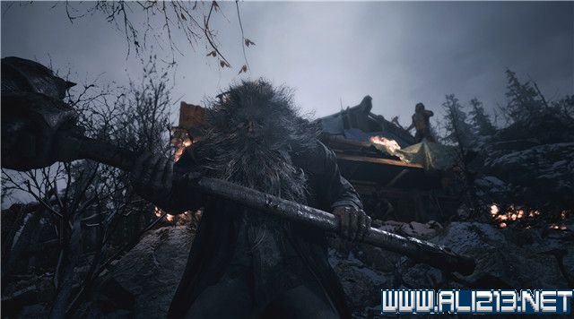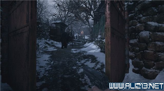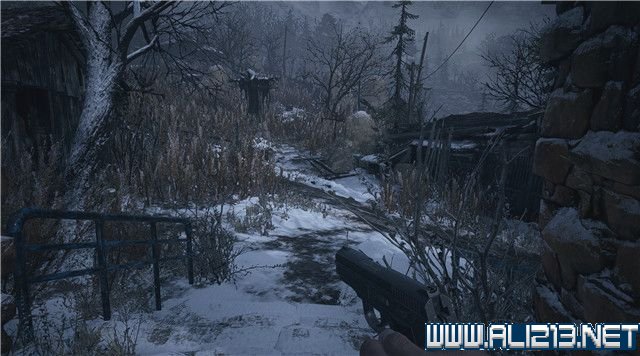 离开这个谷仓后,你可以从这边的栏杆处翻越过去,再走不远,你会来到一个山谷,山谷里是一座小村庄。