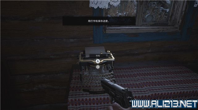 在教堂的一个窗户旁,你可以找到一台打字机,这是你遇到的游戏中的第一处存盘点,你可以在这里保存游戏。