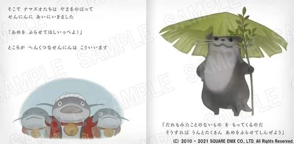 《最终幻想14画册 鲶鱼君与谁都没见过的东西》是《最终幻想14》首部官方画册,由担任《最终幻想14》主要剧本设定的织田万里担任文案,艺术总监长嶺裕幸亲自负责插画,系统收录了大量关于游戏的秘藏资料。
