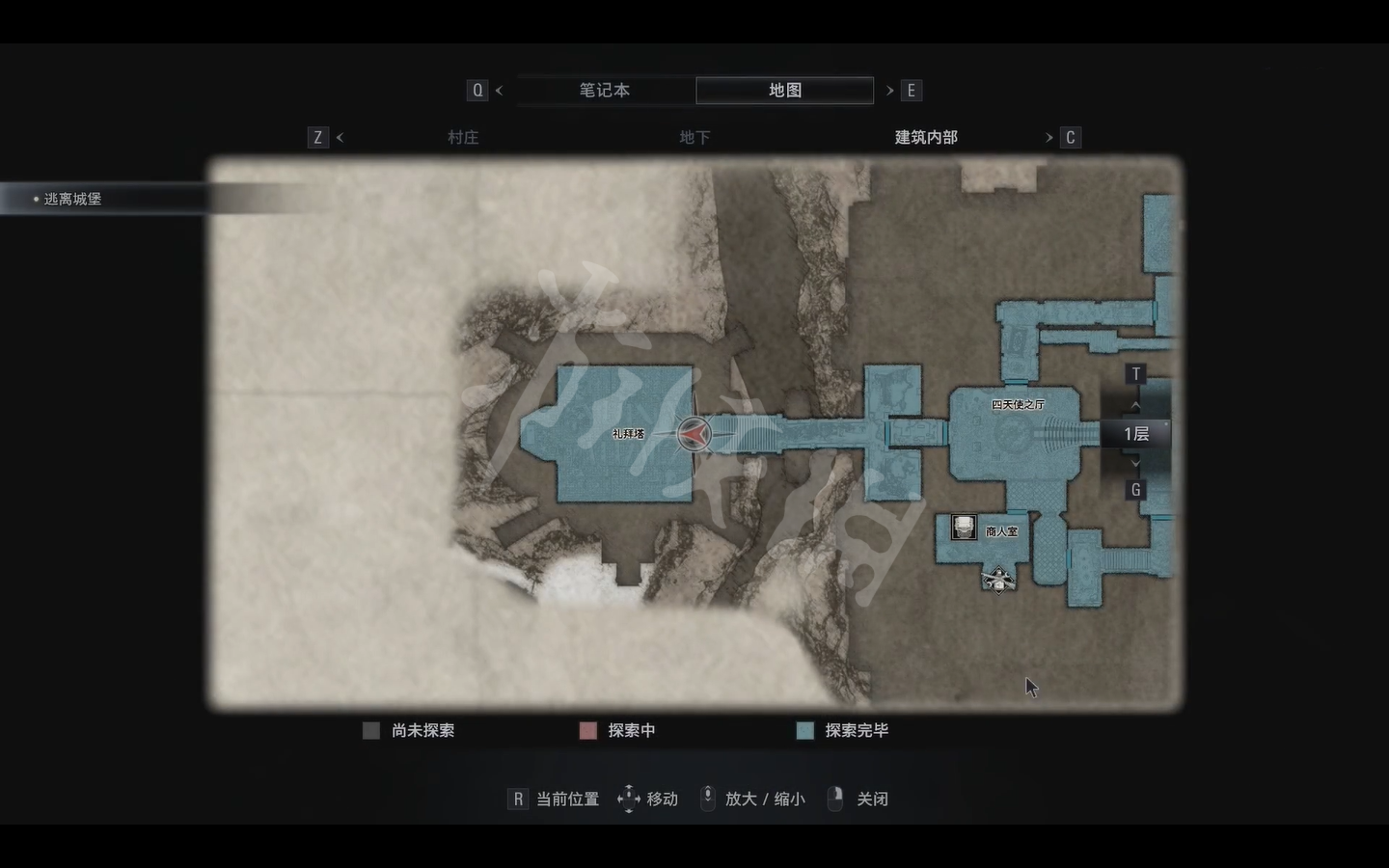 在收集完四个面具后就可以离开四天使之厅了,出门后前面就是礼拜塔。