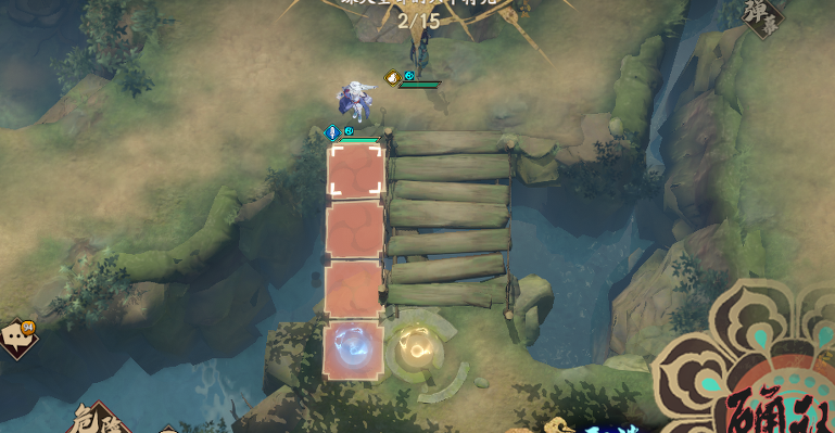 璇玑走到符上,全体加速,古伦德和夏侯仪分别吃掉右上的2个药,注意,这里最好是夏侯仪吃上面的药,然后冰璃先往下走,封铃笙再动冰璃,冰璃飞刺吃符夏侯仪这边直接陨石清场,古伦德跟上