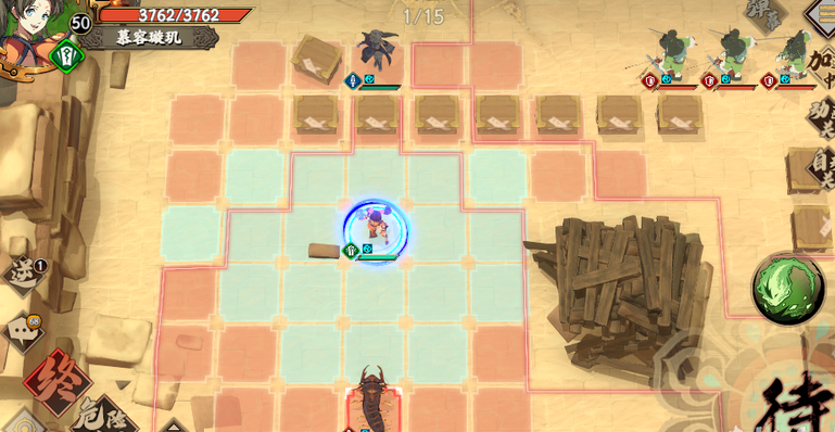 中间三人组,夏侯仪先上来用地火覆盖boss的地形,古伦德攻击,然后封铃笙给古伦德加血。