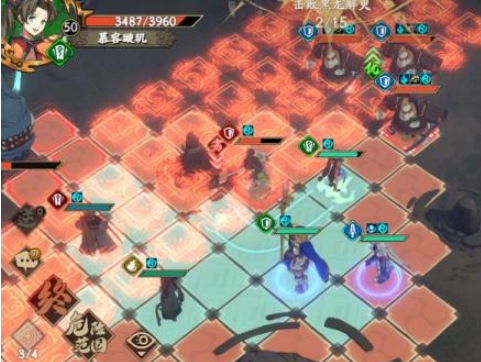 璇玑走到符上,全体加速,古伦德和夏侯仪分别吃掉右上的2个药,注意,这里最好是夏侯仪吃上面的药,然后冰璃先往下走,封铃笙再动冰璃,冰璃飞刺吃符