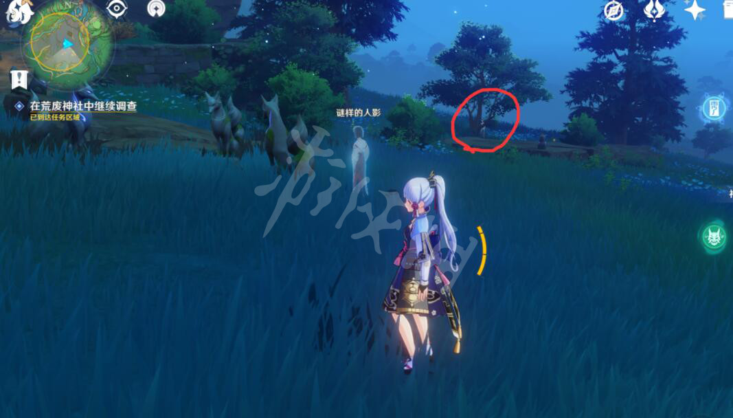 然后和三个式神分别多次对话,知道他们集中在妖狸神像旁。