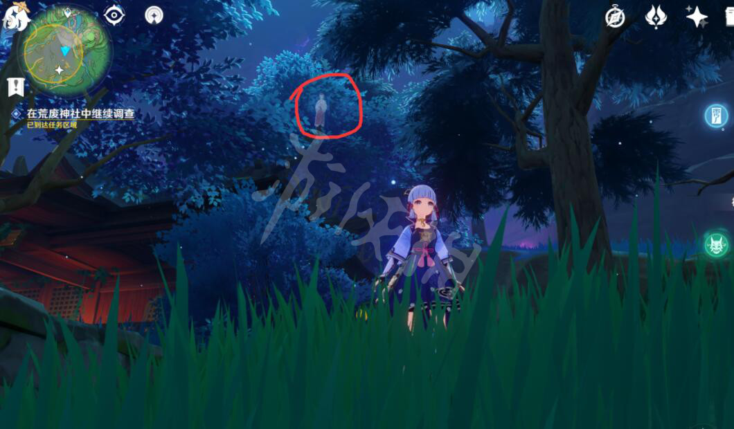 首先需要开启神樱大祓任务,打开小地图,到下图位置显示的红色圈标记的地方。