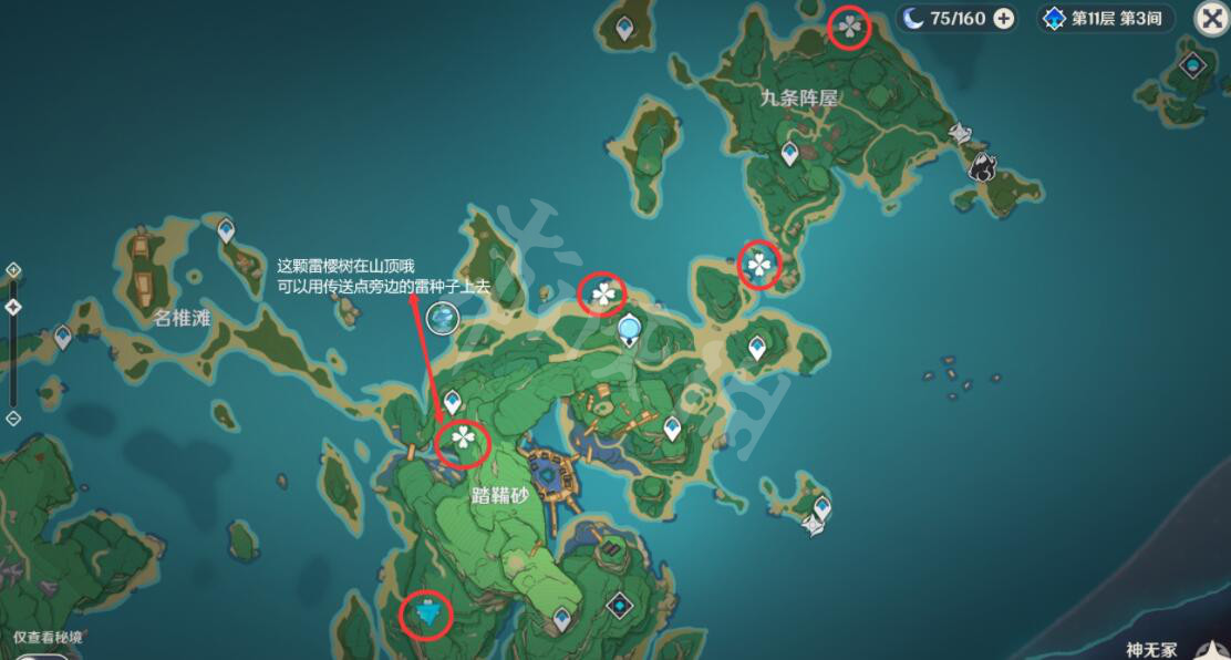 关于原神医樱雷樱树位置分布一览,没有找到或是漏找的玩家可以先看下上面的地图,希望对大家游戏有帮助。
