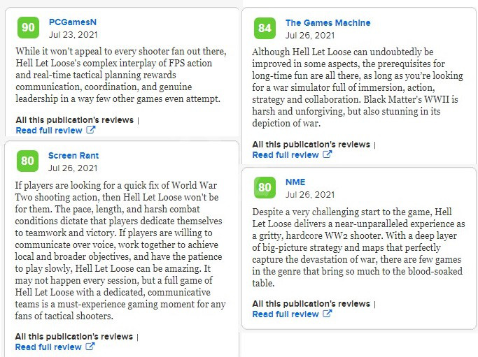 NME:尽管刚上手这款游戏会非常具有挑战性,但作为一款极为硬核的二战射击游戏,人间地狱提供了几乎无与伦比的体验,很少有游戏能带给玩家如此多的真实血腥感受。