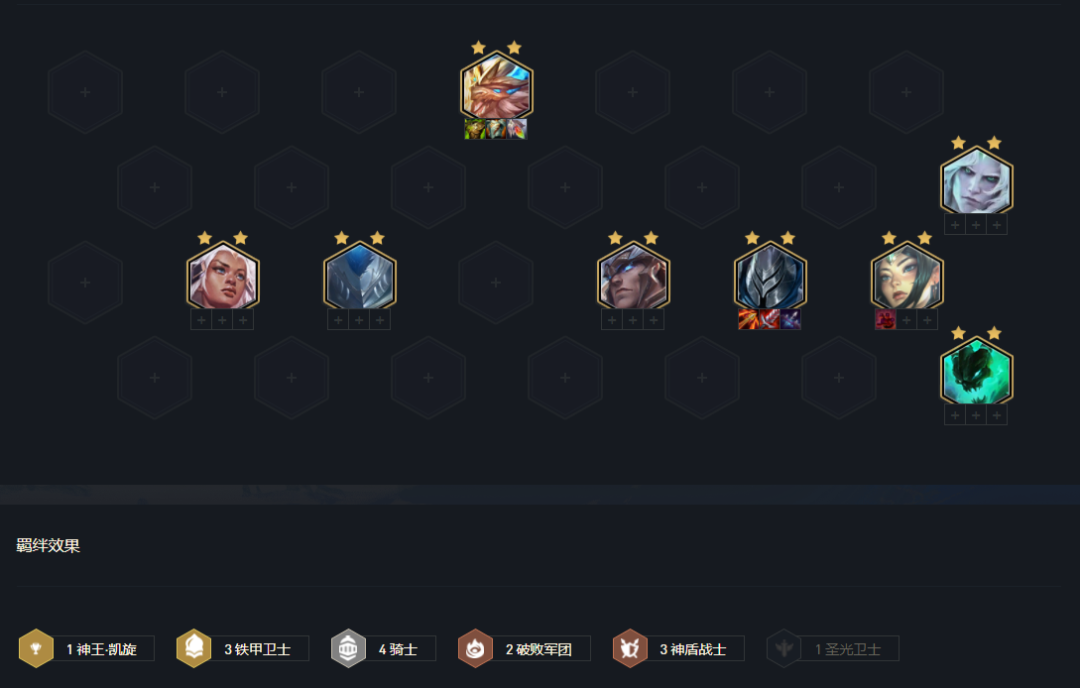 阵容关键羁绊:4骑兵+3铁甲+3神盾。
