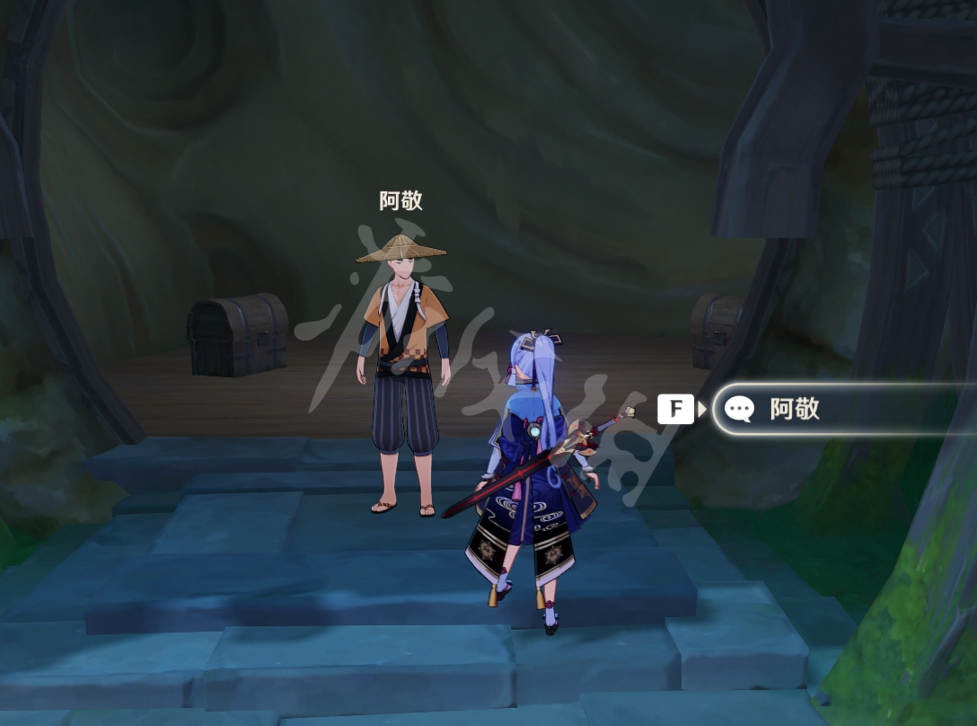在这里跟阿敬对话就可以使用海螺兑换宝箱了。