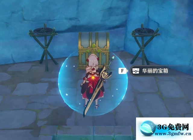 3、赶完3只仙灵后即可解除立场打开华丽宝箱,可获得无名的宝藏。随后会产生风场,起跳即可拿到上方的岩神瞳。