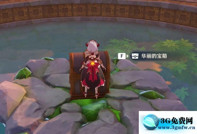 4、然后把视角调向我们之前解谜的方碑可以看到第3个华丽宝箱。