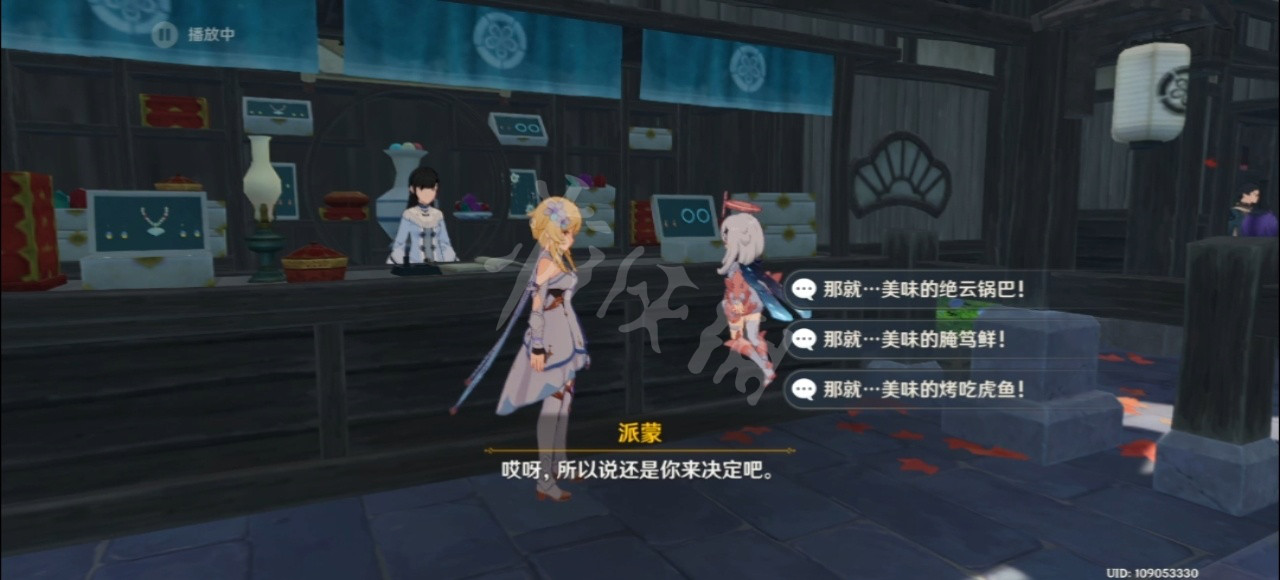 三个选项:水煮黑背鲈;松鼠鱼;蒙德烤鱼。任意一项即可,但是一定要给奇怪的料理。
