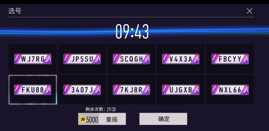 玩家可以通过花费金币来让玩家获得全新的车牌。