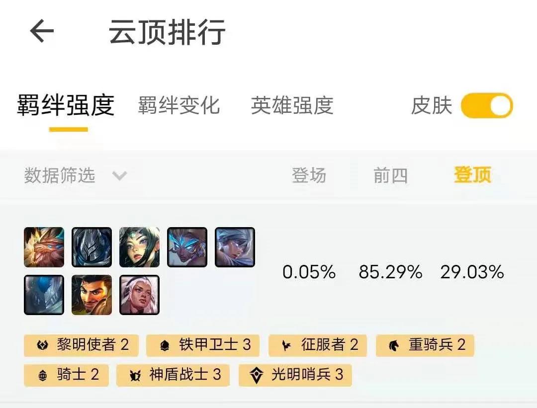 这套阵容吃分率高达85.29%,吃鸡率更是达到29.03%。只要阵容成型吃分、吃鸡不在是梦想且这套阵容只要成型克制版本大部分阵容。