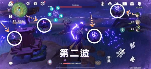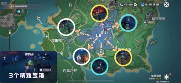 与【五百藏】交谈,陪3只里面玩,就是找到3只会发光的狸猫,会闪现跑,最后会变成可点燃的木架子,用火元素攻击即可。第二只在两个石头那,小的那个石头上,点调查才会出现。