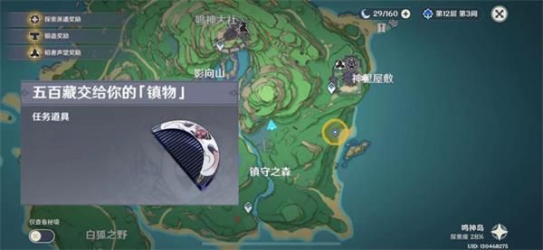 再次与【五百藏】交互,获取扇形的【镇物】,并在小地图上标注结界位置。