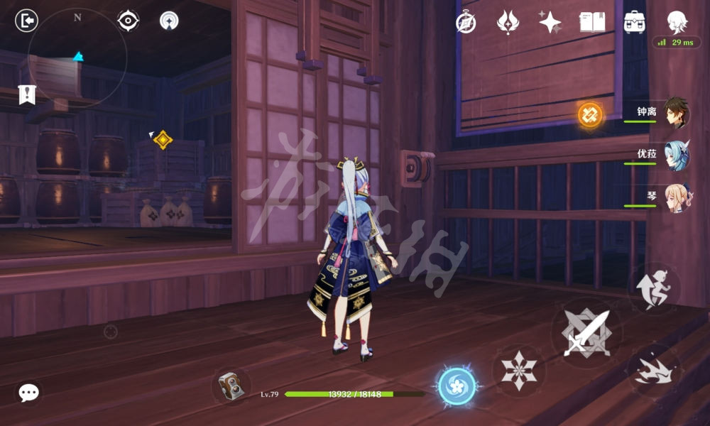 下去以后打掉一波怪物,顺着楼梯上去到第二个下落攻击木板,旁边的小房子里也有一个普通宝箱。
