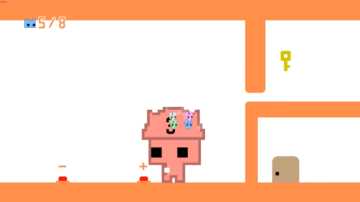 本关的机制是变大变小,关卡中有两个按钮,站在+号按钮上可以迅速变大,站在-号按钮上可以变小。
