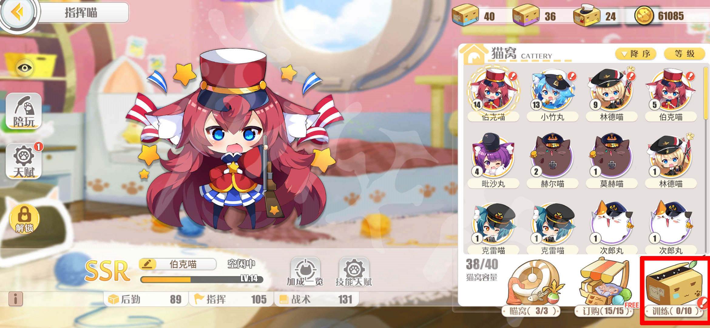 有三种不同稀有度的喵箱,选择想要开启喵箱,或者直接点击一键选择,然后开始训练。