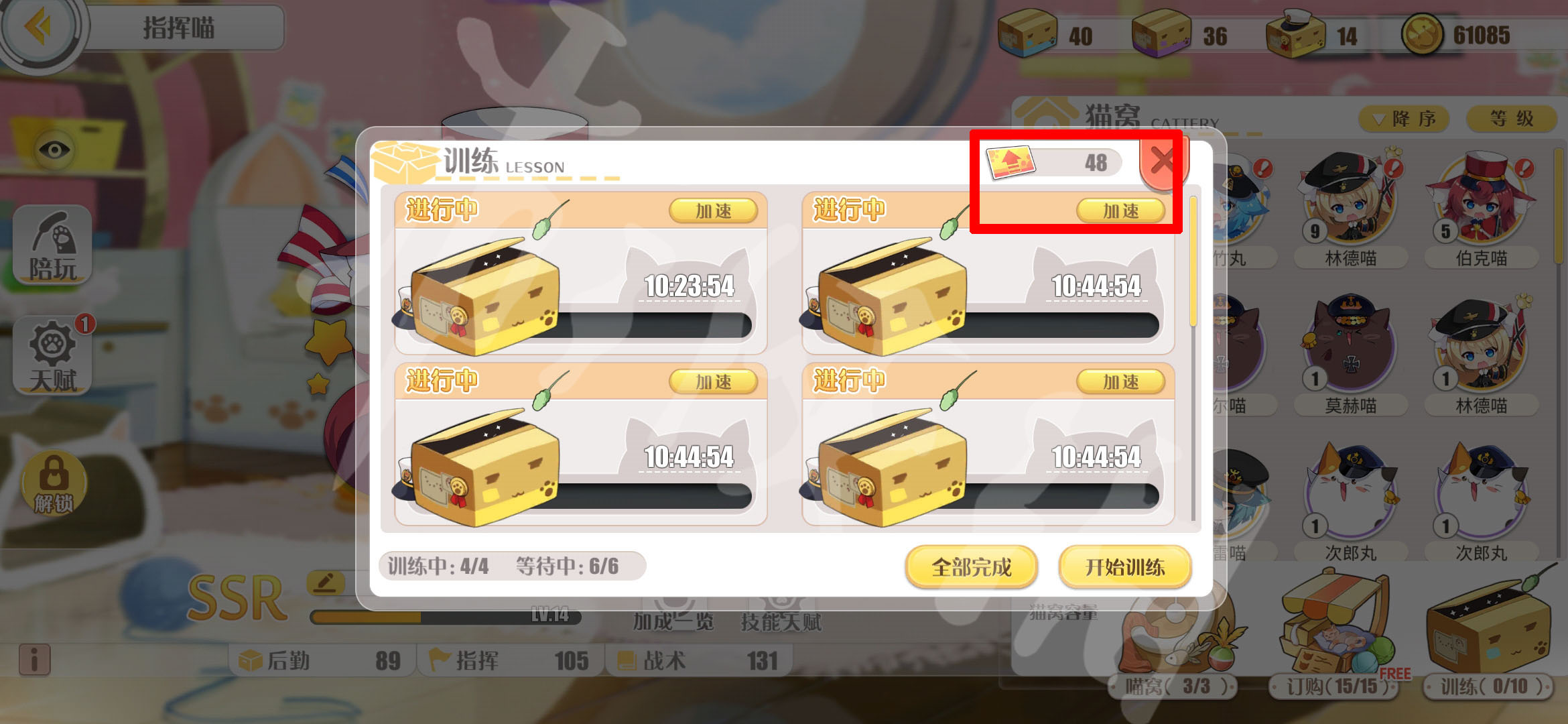 最后只需要等待时间后就可以获得指挥喵了,如果嫌慢的花还可以使用加速卡加速,不过一张加速卡只能加速20分钟。