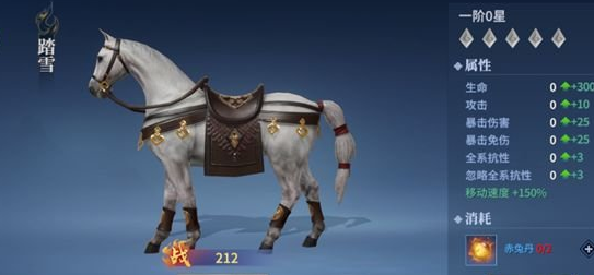 坐骑可通过赤兔丹进行阶级提升、为少侠增加自身属性、提高综合战力