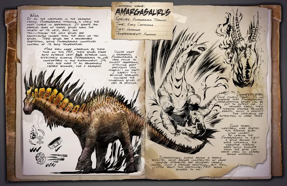 当然到了方舟更令人难以置信的是,阿马加龙的这些棘刺同时能够存储高温和严寒两种极端温度,使阿马加龙在任何环境下都能舒适地生活。而它的背亦让它成为了高效率的游泳者——相对于蜥脚类恐龙而言。