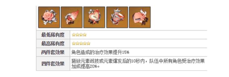 2、中后期少女四件套为治疗效果最佳的,主词条:充能沙漏、攻击杯、攻击头,风四件套脱手大招可给怪物减40%抗性,偏向辅助增伤,主词条:充能沙漏、攻击杯、治疗头/攻击头,副词条:元素充能>攻击力>元素精通;
