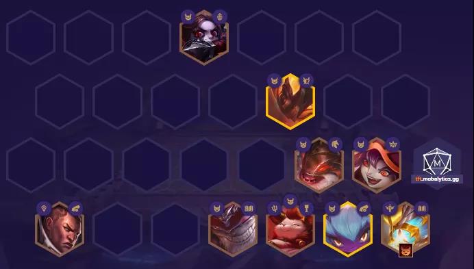 这套阵容的上限很高,大后期还可以给提莫抓装备,实战测试比正常的赌小炮,马后炮是要强的,大成过后能开出8小恶魔的话面对任何主流阵容都能打,就算是碰上丧尸大头都不用怕,而且最关键的是现在玩小恶魔体系的人很少,想上分就赶快学起来吧!二、阵容解读