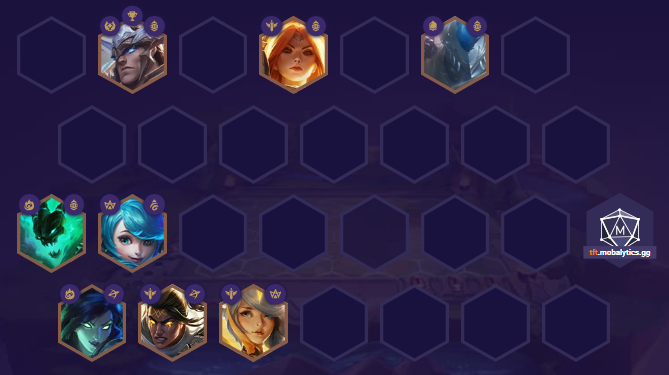 这套阵容成型不惧怕任何街机中国,卢锡安等主流阵容,唯一面对法系大头、大眼相对吃力,所以我们后期选秀可以拿射线应对,站位方面尽量站的分散一点,少吃一点法系的AOE,很胡的话就上9,大后期可以考虑转成六骑天使!