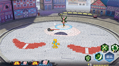 游戏内战斗时的巴鲁兽会伸出长长的根须对敌人进行攻击,并使其陷入中毒状态,不同的进化路线还有着不同的技能效果。