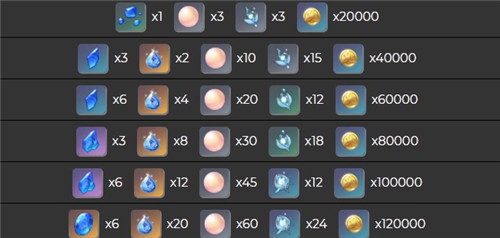 20级:涤净青金碎屑*1+珊瑚珍珠*3+浮游干核*3+摩拉20000