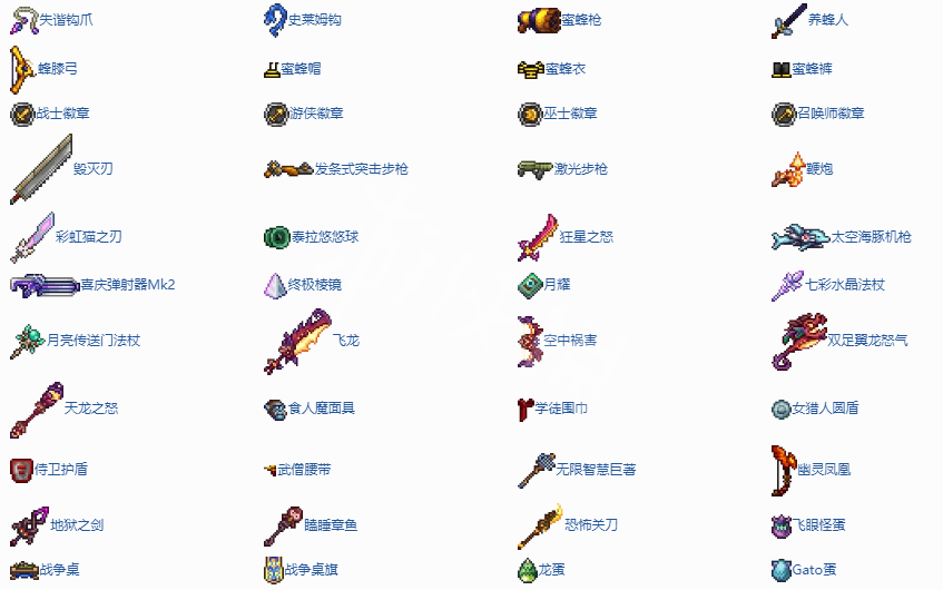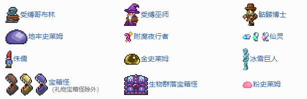 任何Boss(或者特定的某些敌怪,如宝箱怪和生物群落宝箱怪)从一个特定列表里掉落其中一件物品时,运气不会影响所选的物品。