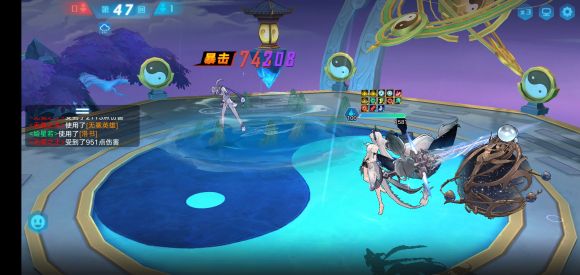 6.这里运气好无冕后期属性技能用的比较多(但是无冕属性技能提魔防会导致绘星若伤害下降),而且绘星若化解了无冕最后一个大招,最终47回合完成击杀,如图2。