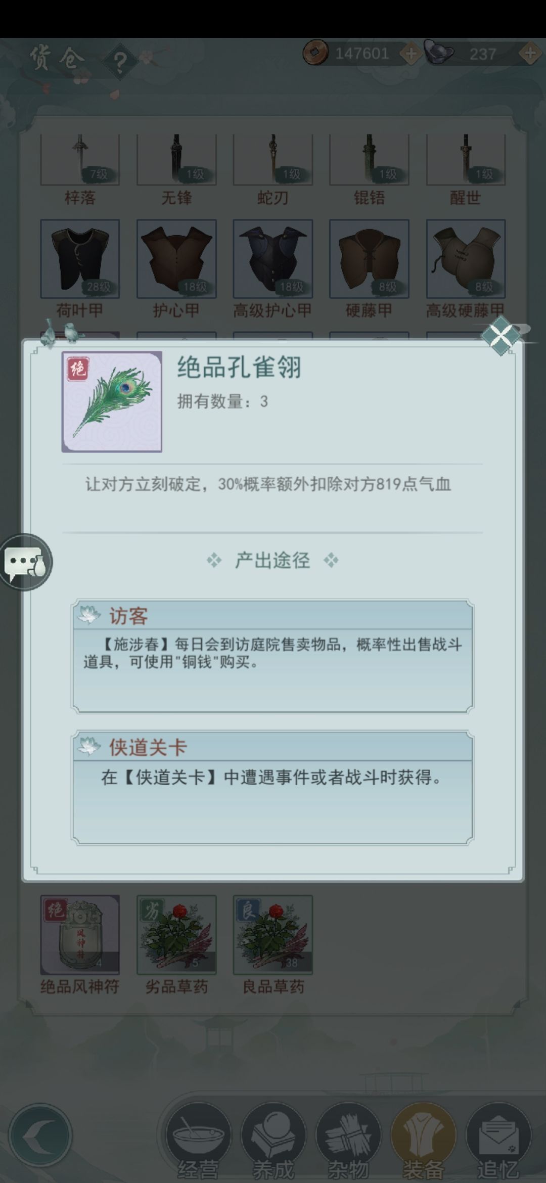 绝品归元丹+绝品孔雀翎。