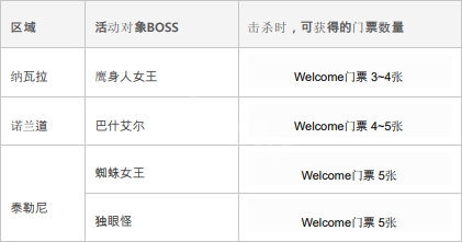 每次击杀以下活动对象的野外精英怪时,均可获得Welcome门票。