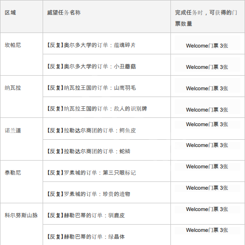 每次完成威望任务,均可获得Welcome门票。