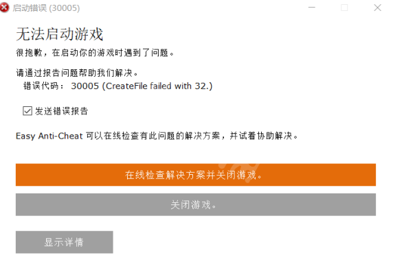 很多小伙伴在游戏中遇到了启动错误的问题,错误代码为30005,如下图。