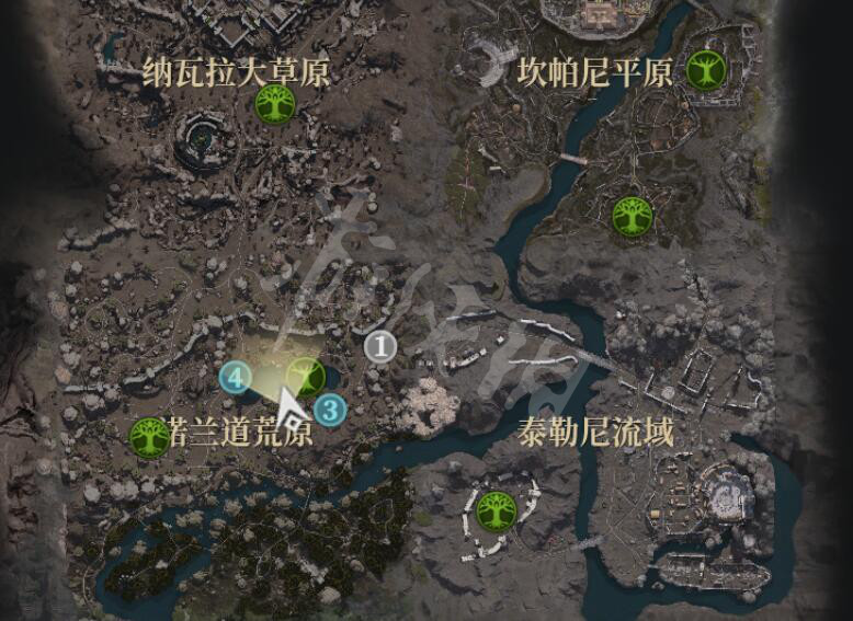 然后我们会在附近看到几块很高的石头山,走到如图位置在地图看的话就是从左往右第二个山头。