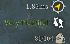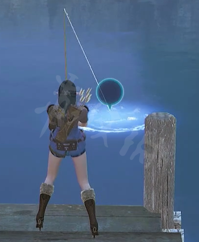 在钓鱼的时候我们会看到这种蓝色的圈,需要将鱼钩丢进蓝色的圈内,才能吃到圈的buff。