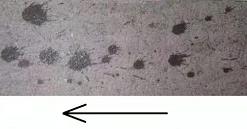 行走时的滴状血痕呈椭圆形,行走方向一侧呈星芒状。根据滴状血痕的特点,可推断受伤者受伤时的体位、活动及行走等情况,为推断案件性质等提供线索和依据。